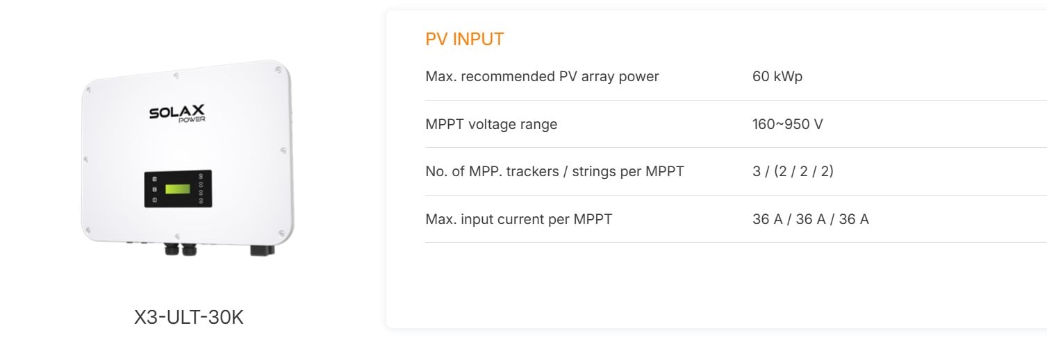 Solax X3 Ultra Hybrid 30.0KW, geniş ve çok yönlü çatı sistemleri için tasarlanmış yüksek kapasiteli bir hibrit inverterdir. Üç ayrı MPPT (Maximum Power Point Tracking) kanalı sayesinde farklı yön ve eğimdeki panellerden maksimum enerji üretimi sağlar. Bu özellik, büyük çatı sistemlerinde verim kaybını minimuma indirir ve yatırım geri dönüşünü hızlandırır.